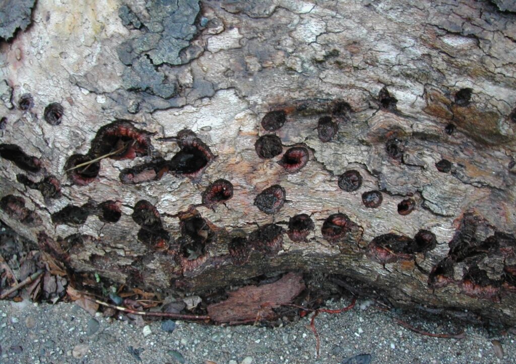 Turpentine Beetle (another form of borer) and the damage they do to a tree.