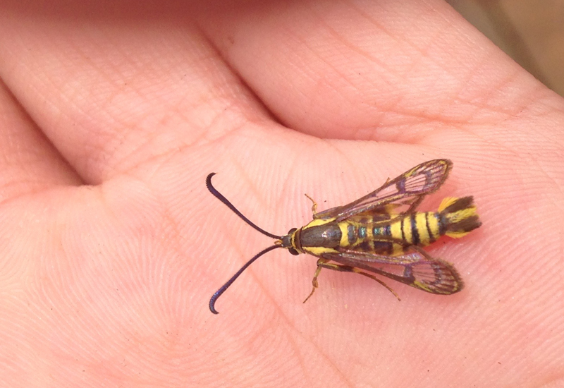Adult Sycamore Borer (clearwing moth) and the damage their larvae do to a tree.